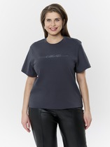Майка свободного прямого силуэта со спущенным плечом. Рукав четвертной. По переду завязывается декоративный бант.