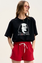 Футболка женская из гладкокрашеного трикотажного полотна «кулирка с лайкрой», свободного покроя, с втачными короткими рукавами и вышивкой пайетками на полочке. Горловина овальной формы обработана втачной планкой с отделочной строчкой по шву притачивания.