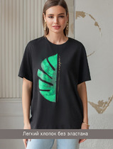 Vilatte Футболка из премиального хлопка с авторским принтом D49.089 черный_inspi