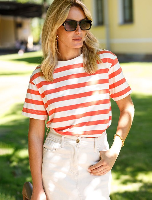 Состав: 92%Хлопок 8%ПУФутболка прямого кроя выполнена из длинноволокнистого 100% хлопка премиальных сортов, поэтому изделие не потеряет форму после стирки и надолго сохранит свой безупречный вид. Свободный крой подходит для любой фигуры. В комплекте со светлым, белым денимом или классическими брюками поддержит непринужденность повседневного образа.