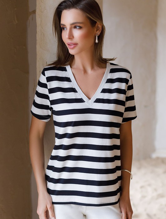 Состав: 92%Хлопок 8%ПУ Параметры модели на первом фото: Рост 170, бюст 89, талия 63, бедра 92 Размер товара на первом фото: 42Футболка выполнена из премиального хлопка. Базовая модель с V-вырезом впишется в любой гардероб в любом сезоне. Наличие эластана в составе изделия гарантирует комфорт и формоустойчивость. На рукаве металлический логотип бренда.