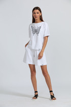 Джемпер свободного кроя с принтом бабочка из комплекта Kivvia Art Creations. Удлиненный рукав, с подворотом рукава. Ткань кулирная гладь , качество Пенье, плотность 200 г.м2.