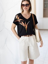 Свободная футболка с V-вырезом и цельнокроеным рукавом из 100% хлопка с принтом