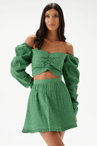 Майка – из полотна «кашкорсе» на широких бретелях. Горловина и проймы окантованы основным материалом.