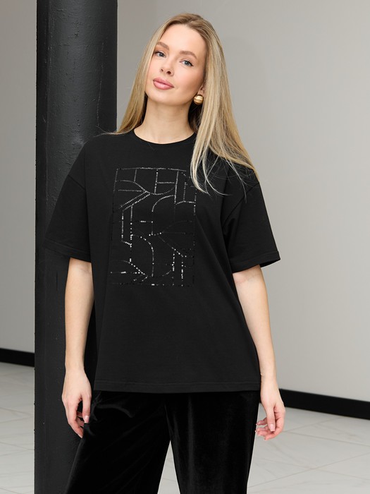 21.04 Vilatte Нарядная футболка с принтом фольгой из премиального хлопка с эласт