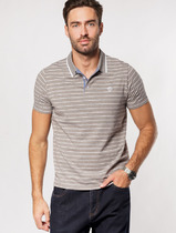 Футболка-поло из однотонного хлопкового полотна с добавлением лайкры. Втачной короткий рукав на манжете, воротник на отрезной стойке с застежкой на три пуговицы.