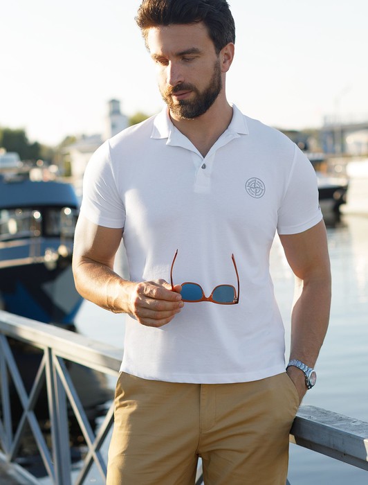 Состав: 92%Хлопок 8%ПУ Параметры модели на первом фото: Рост 190, бюст 108, талия 87, бедра 104 Размер товара на первом фото: 54Футболка-поло выполнена из фактурного трикотажа. Модель с прямого кроя с небольшими разрезами по бокам дополнена вязаным воротником вышивкой с компасом. Премиальный хлопковый трикотаж гарантирует комфорт и износостойкость. На рукаве брендированная металлическая нашивка.