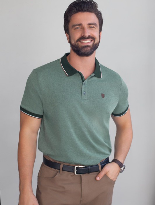 Совместные покупки Симферополь Мужская одежда Джемперы, свитеры — Футболка поло с воротником на пуговицах из полотна пике с меланжевым плетением с