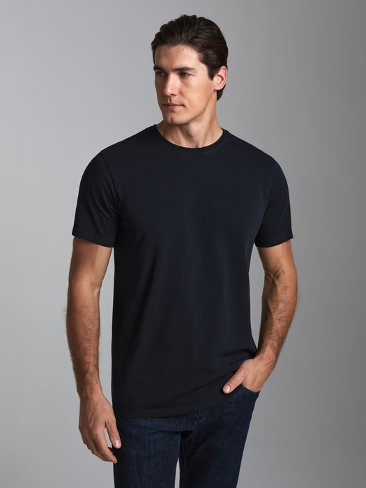 Футболка из хлопкового кулирного полотна. Классическая модель с короткими рукавами.Горловина обработана обтачкой из основного полотна.