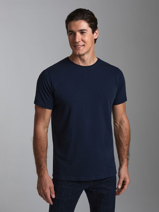 Футболка из хлопкового кулирного полотна. Классическая модель с короткими рукавами.Горловина обработана обтачкой из основного полотна.