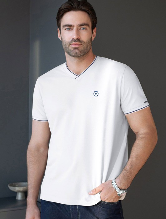 Футболка с V-вырезом из премиального хлопка с эластаном