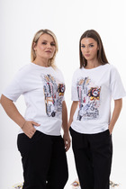Футболка женская из гладкокрашенного трикотажного полотна «кулирка», свободного силуэта, с боковыми швами, переходящими в рельефы, в правом соединительном шве выполнен разрез. Горловина овальной формы обработана втачной планкой и дополнена декоративным элементом.