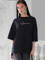 Vilatte Футболка оверсайз с принтом стразами из премиального хлопка с эластаном