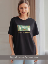 09.04 Vilatte Футболка из премиального хлопка с авторским принтом D49.089 черны