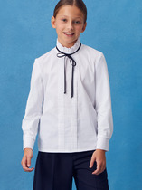 Трикотажная школьная блузка для девочки приталенного силуэта,