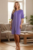 Халат женский из велюра, на молнии, рукав 3/4, вырез на угол, по горловине планка.