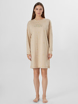 Женский халат выполнен из кулирки, 100% хлопок. Модель свободного кроя, отрезная кокетка, на пуговицах, в боковых швах карманы, рукав 3/4.