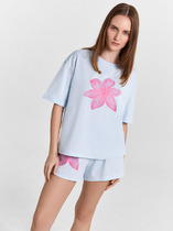 Халат домашний запашной на поясе, с бортами и манжетами, отделанными кружевом с фигурным низом.
