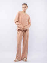 Халат женский из гладкокрашенного трикотажно полотна «кулирка» с набивным рисунком, полуприталенного силуэта, с короткими рукавами покроя «реглан» и горловиной овальной формы, окантованной основным материалом, с центральной бортовой застежкой на тесьму «молния». По срезу горловины выполнены неглубокие складки, нижние резы рукавов обработаны притачными манжетами с кантом контрастного цвета.