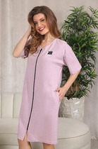 На левой полочке халата расположена вышивка контрастного цвета, которая добавляет изюминку в дизайн. Боковые карманы и разрезы по бокам внизу придают модели оригинальность.
