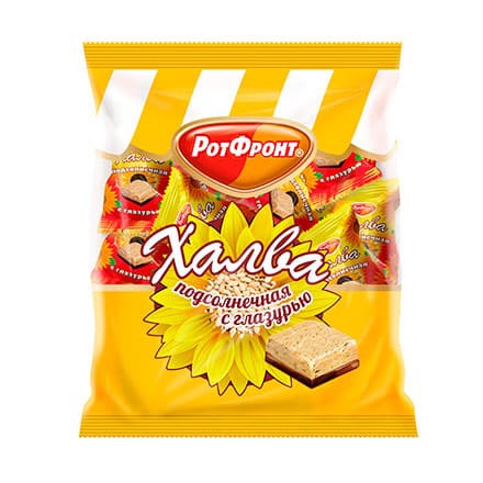 Подсолнечная халва на глазированном донышке от фабрики «Рот Фронт». Ароматные квадратики халвы, покрытые шоколадом лишь со стороны донышка. Утонченное сочетание подсолнечной халвы и шоколадной глазури: насыщенный вкус подсолнечных семечек и ненавязчивая шоколадная сладость. Конфеты для настоящих сладких гурманов.