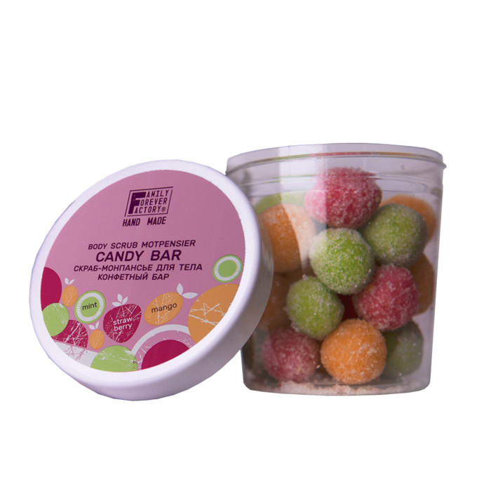 Не отказывайте себе в десерте, ведь скраб-монпасье - это сладость с пользой для фигуры. Ароматная клубника, экзотический манго или тонизирующая мята - выбирайте шарик под настроение. Масло кокоса интенсивно питает и увлажняет, обеспечивая коже длительный комфорт.