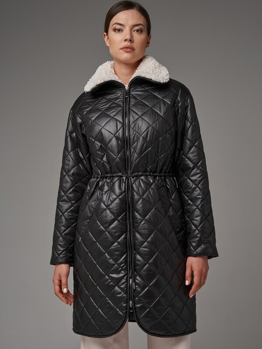 Ткань плащевая с блеском, простеганная ромбом с водоотталкивающей пропиткой.