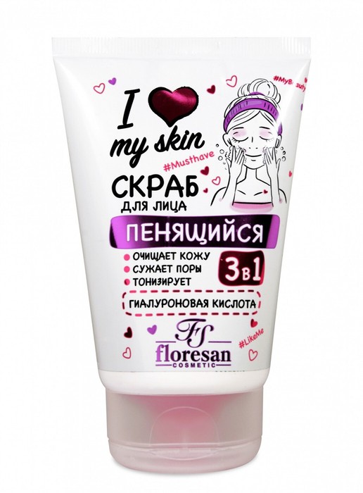 Совместные покупки Симферополь Косметика и парфюмерия Скрабы, пиллинги для лица — FLORESAN I Love my Skin Скраб пенящийся д/лица 3 в1 Гиалуроновая кислота