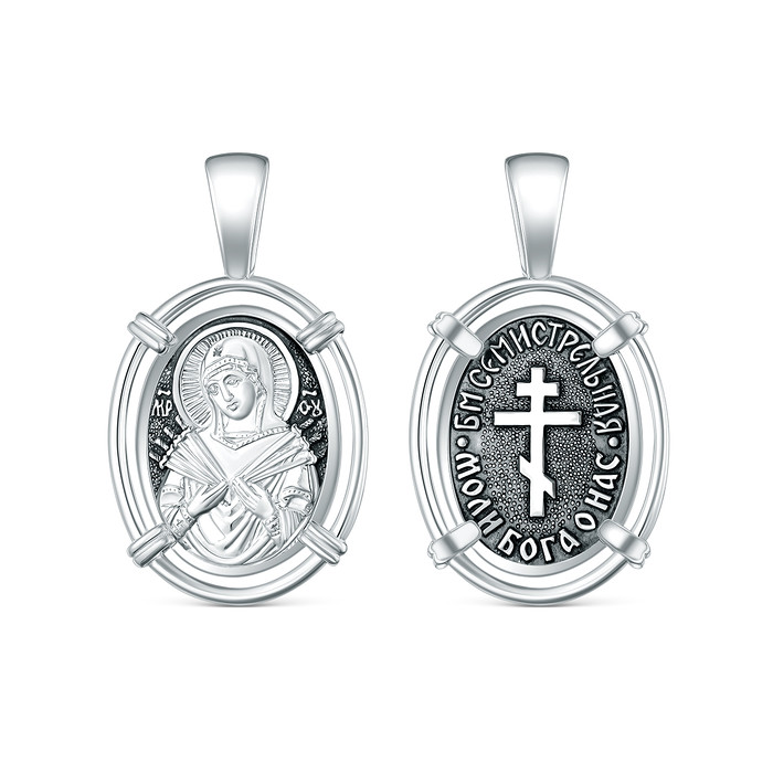 Икона нательная из чернёного серебра - Семистрельная Божья Матерь 925 пробы К3-5