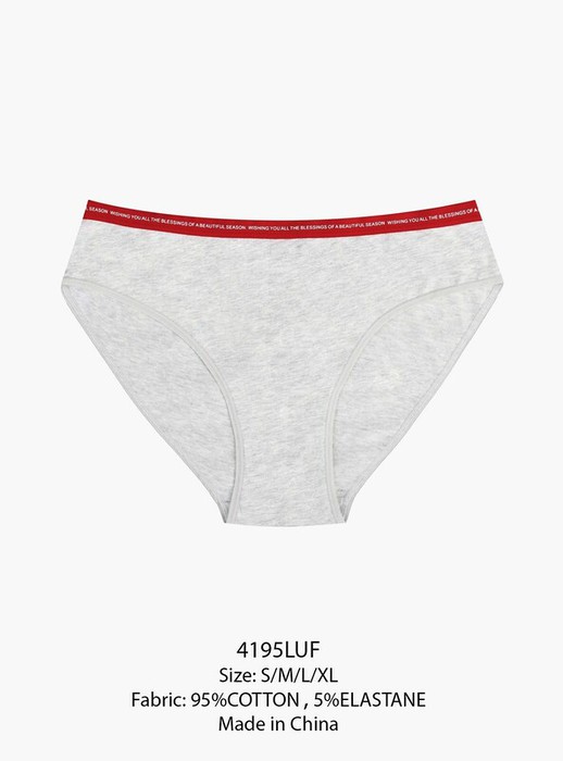 Трусы средней посадки держатся на талии мягкой красной резинкой с повторяющейся надписью: «WISHING YOU ALL THE BLESSINGS OF A BEAUTIFUL SEASON».