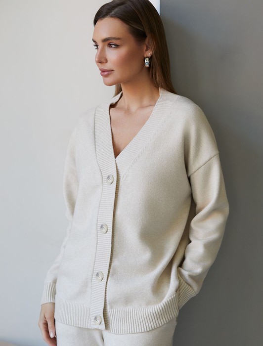 Состав: 52%ПАН (акрил) 33%ПЭ 8%ПУ 7%Кашемир Плотность: 7 GG Размер товара на первом фото: 42Удлиненный кардиган выполнен из мягкой меланжевой пряжи с добавлением кашемира. Классическая модель с глубоким вырезом прямого силуэта идеально сочетается как с брюками, юбками, джинсами, так и с платьями. Застежка на пуговицы. Изделие очень приятное к телу, совершенно не колется и отлично сохраняет тепло. Сочетается в костюме с брюками D38.013, D38.012 и юбкой D36.016