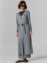 Кардиган свободного прямого силуэта длиной макси. Изделие со съемным поясом  и накладными карманами. Рукав втачной, двухшовный, пройма приспущена. Воротник английский. Застежка не предусмотрена. В боковых швах разрезы.