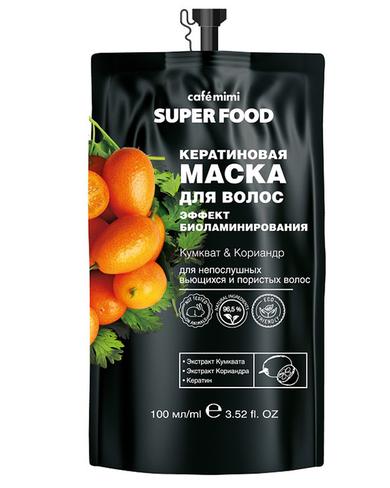 Маски для волос серии SUPER FOOD на основе натуральных экстрактов и масел увлажняют и питают, восстанавливают, предотвращают выпадение и активизируют рост волос. Для усиления эффекта используй вместе с шампунем и бальзамом из серии CAFE MIMI SUPER FOOD.