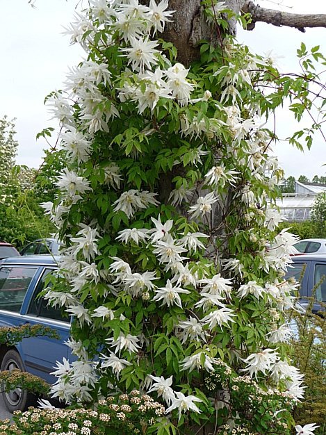 Цветок действительно выглядит элегантно и изящно в облаке белых соцветий. Само растение достигает высоты в 4 метра. Его лианы в первый год жизни окрашены в яркие зеленые тона. Впоследствии приобретают бурый или вишневый цвет коры. Хорошо плетутся по любым опорам.