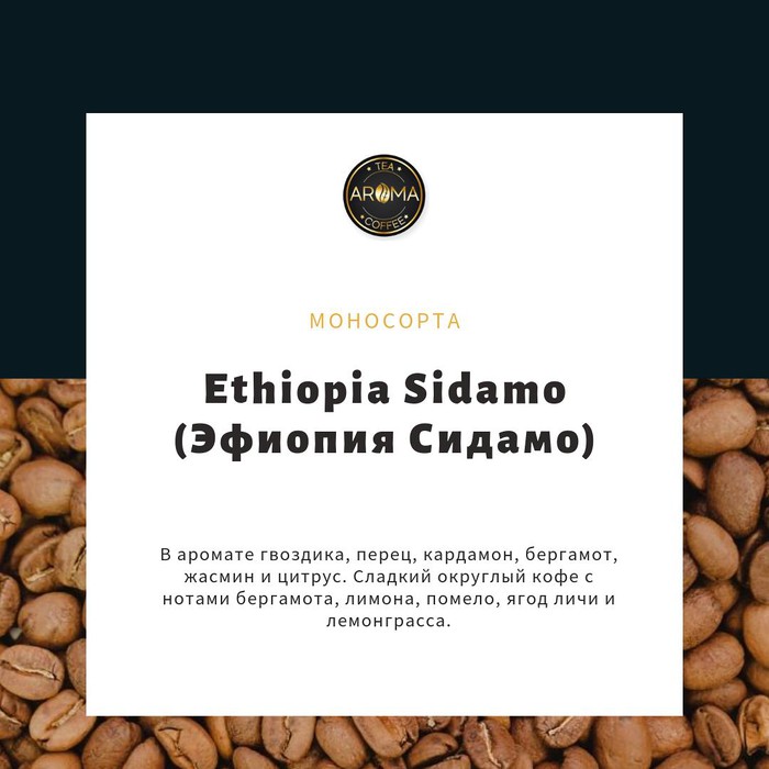 Сидамо – регион, расположенный на плоскогорье в южной части Эфиопии. Особенности местного микроклимата и ландшафта создали условия для выращивания арабики с уникальным вкусом. Зерна эфиопской арабики обрабатываются мытым способом.