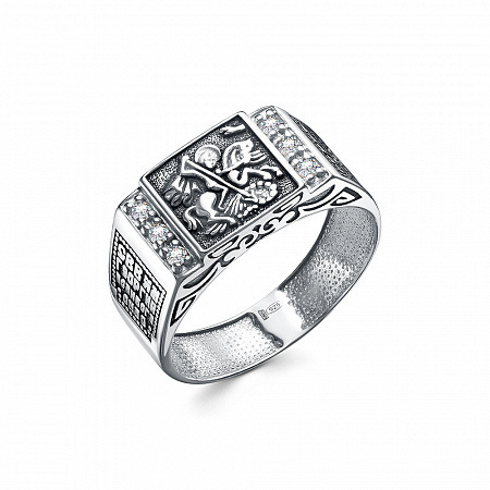 Кольцо (Георгий Победоносец) из серебра ч/ч литьё с фианитом