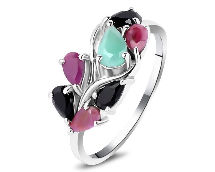 Кольцо, арт.658410 Серебро Серебро 925, р. 17, 2,75 гр., изумруд берилл , рубин корунд , сапфир корунд