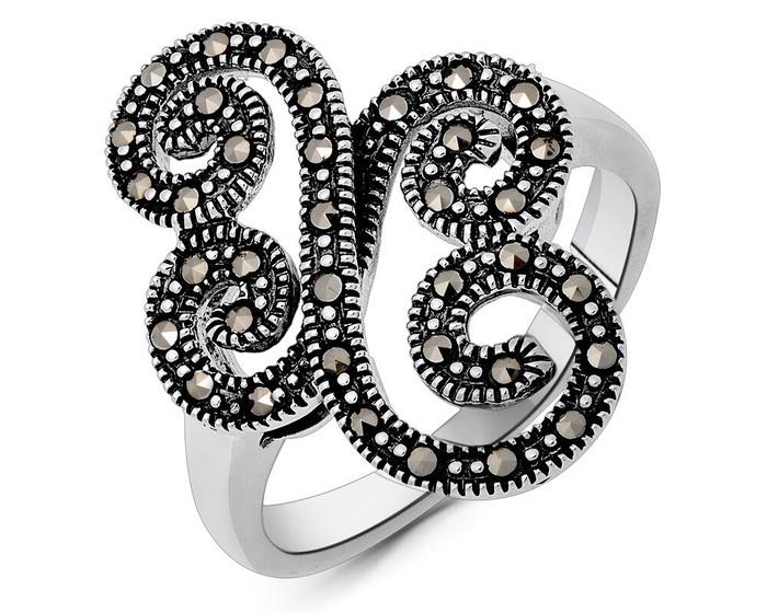 Вес: 4.12 г Вставка: Марказит Цвет камня: Серый Производство: Таиланд Покрытие: Оксидирование Размер колец: 1717.5181920 Количество: 10Кольцо, арт.656426 Серебро Серебро 875, р. 17.5, 4,12 гр., марказит