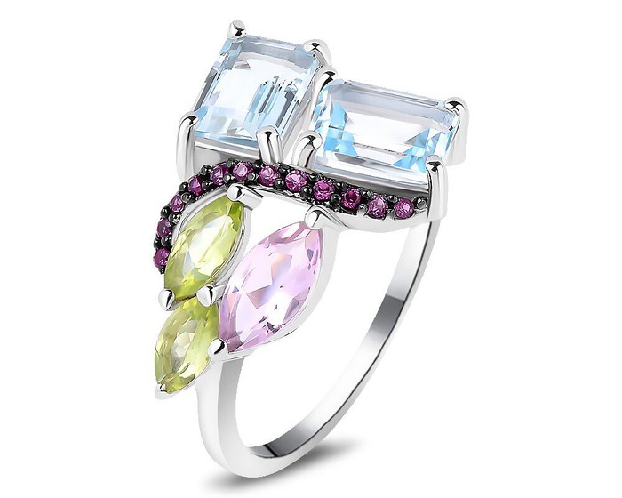 Кольцо, арт.658416 Серебро Серебро 925, р. 17.5, 3,55 гр., морганит , перидот , топаз , нанорубин