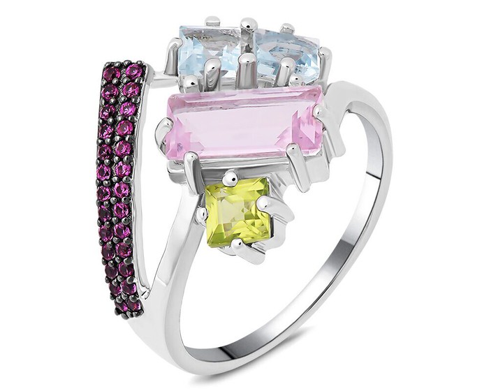 Кольцо, арт.656733 Серебро Серебро 925, р. 18, 3,87 гр., морганит , перидот , топаз , нанорубин