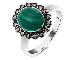 Кольцо, малахит прес. , марказит, SL-AGA721