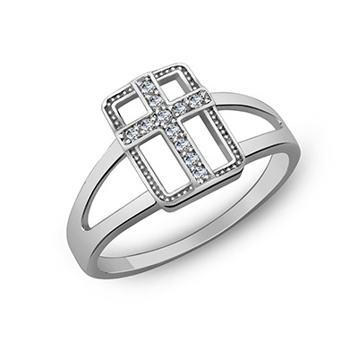 Кольцо с фианитом родированное серебро 925*