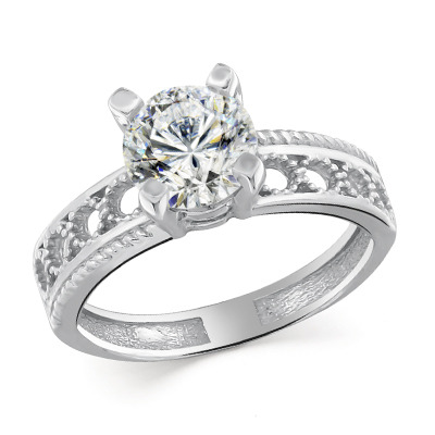 Кольцо с фианитом родированное серебро 925*