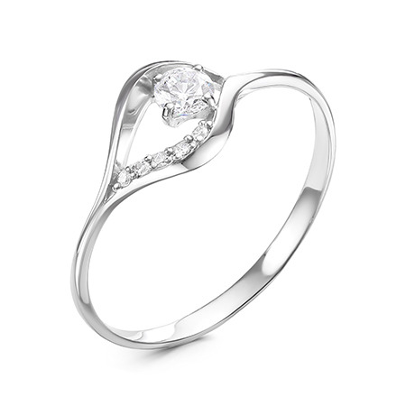 Кольцо с фианитом родированное серебро 925*