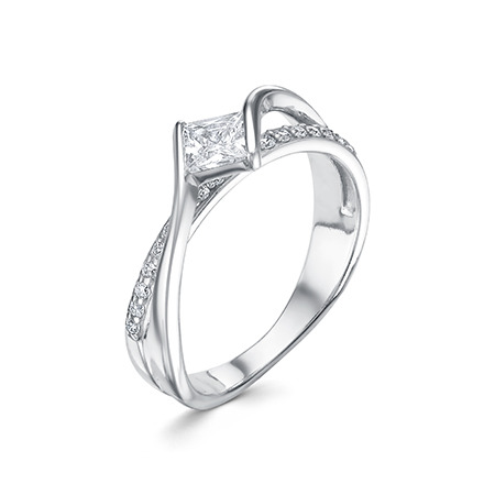 Кольцо с фианитом родированное серебро 925*