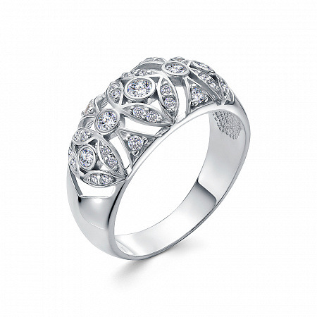 Кольцо с фианитом родированное серебро 925*