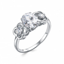 Кольцо с фианитом родированное серебро 925*