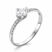 Кольцо с фианитом родированное серебро 925*