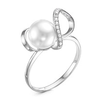 — Кольцо с иск.жемчугом родированное серебро 925*