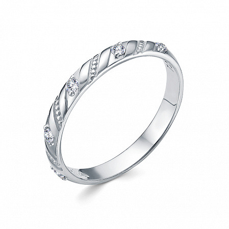 Кольцо (Спаси и Сохрани) из серебра с фианитом родированное литье